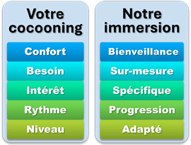 le Cocooning© qui s'appuie sur vos compétences du moment et vos centres d'intérêt pour vous mettre à l'aise, à votre rythme et